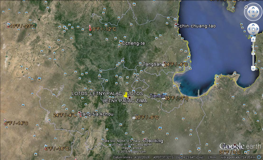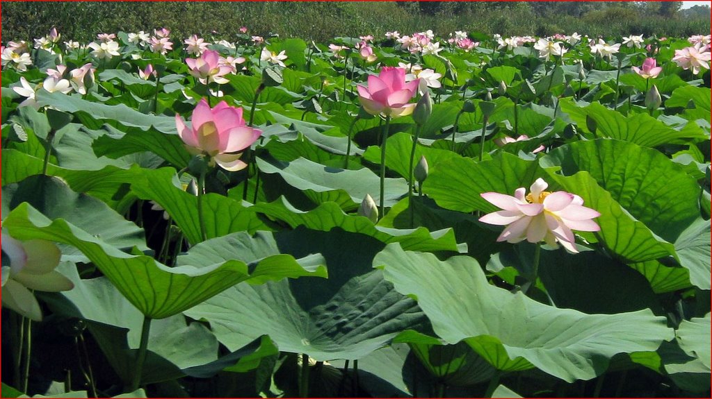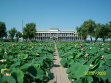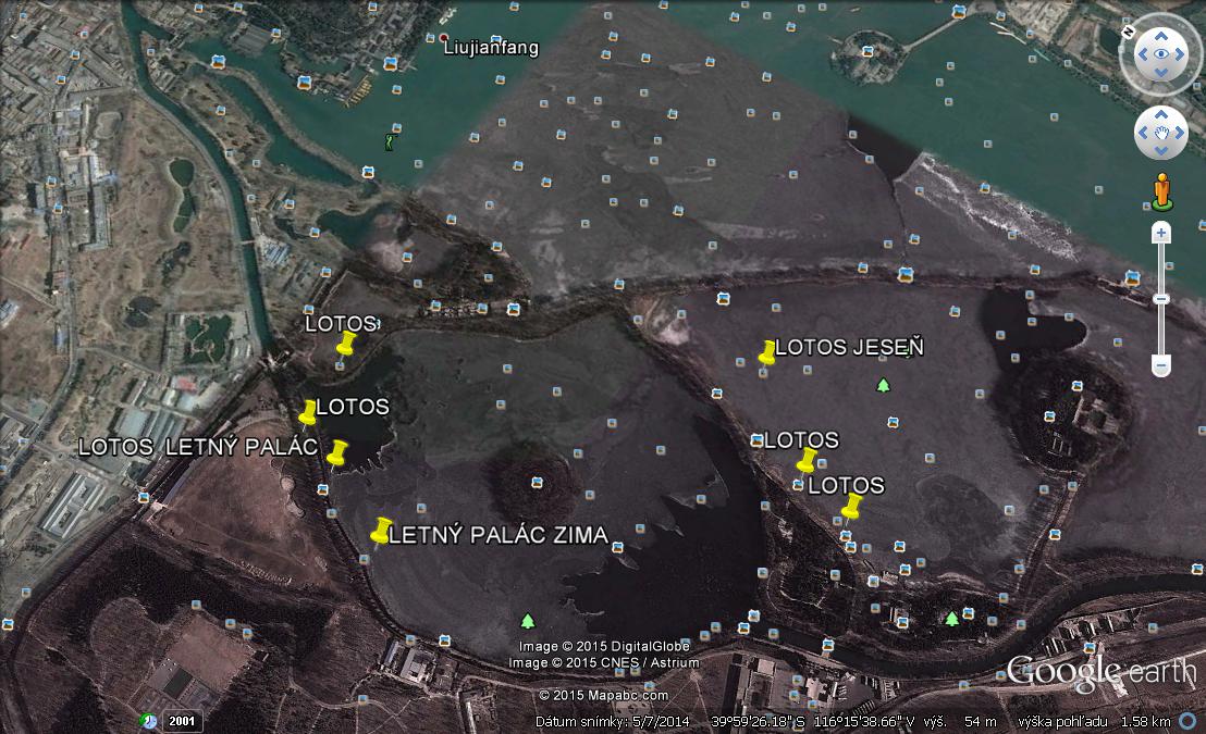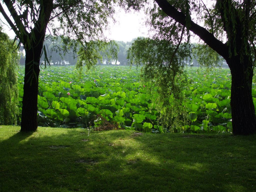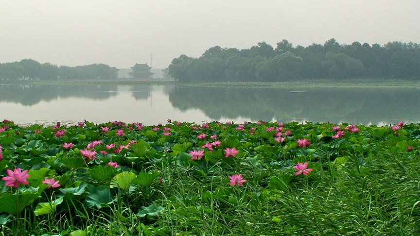 Neďaleko „Zakázaného mesta“ v Pekingu sa nachádza Letný palác, v okolí ktorého sú obrovské výsadby drevín a iných zaujímavých rastlín.. Okrem pôvodnej záhradnej a stavebnej historickej čínskej architektúry sa tu nachádzajú jazerá a jazierka s veľkými plochami porastov lotosov. Zimy v tejto časti Číny sú tuhé, ale letá sú zas horúce a to lotosom prospieva.