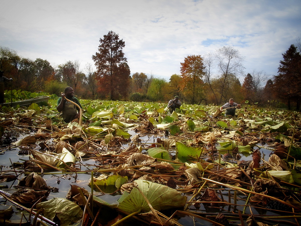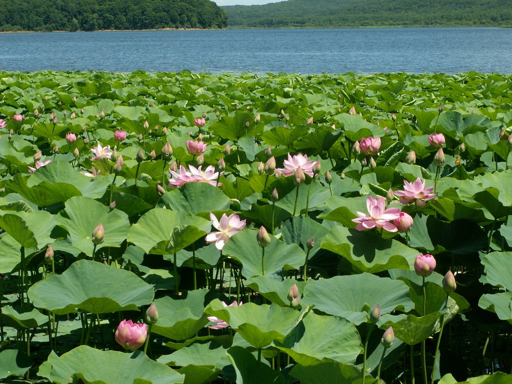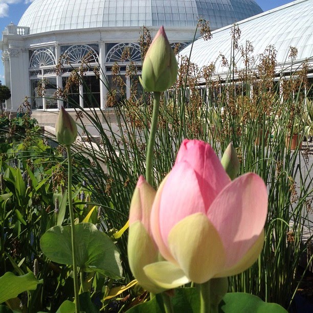 Aj v botanickej záhrade v New Yorku sa nachádzajú porasty lotosov. Nie sú veľké, nakoľko sú pestované vo vymedzenom priestore v jazierku, ale sú výborným príkladom ako je ich možno pestovať. Aj týmto spôsobom sa dá dosiahnuť skvelý efekt.