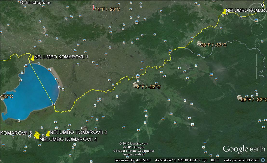 Lotos Nelumbo nucifera Komarovii je zrejme najsevernejšie rastúcim lotosom vôbec. Jeho prirodzený výskyt je od hraníc zo Severnou Kóreou, cez Vladivostok, jazero Khanka, až po mesto Chabarovsk. V zime tu klesá teplota pod -40 st. C, ale letá sú tu zas teplé. Pre zaujímavosť: V tejto oblasti sa vyskytuje aj Tiger sibírsky usurijský.