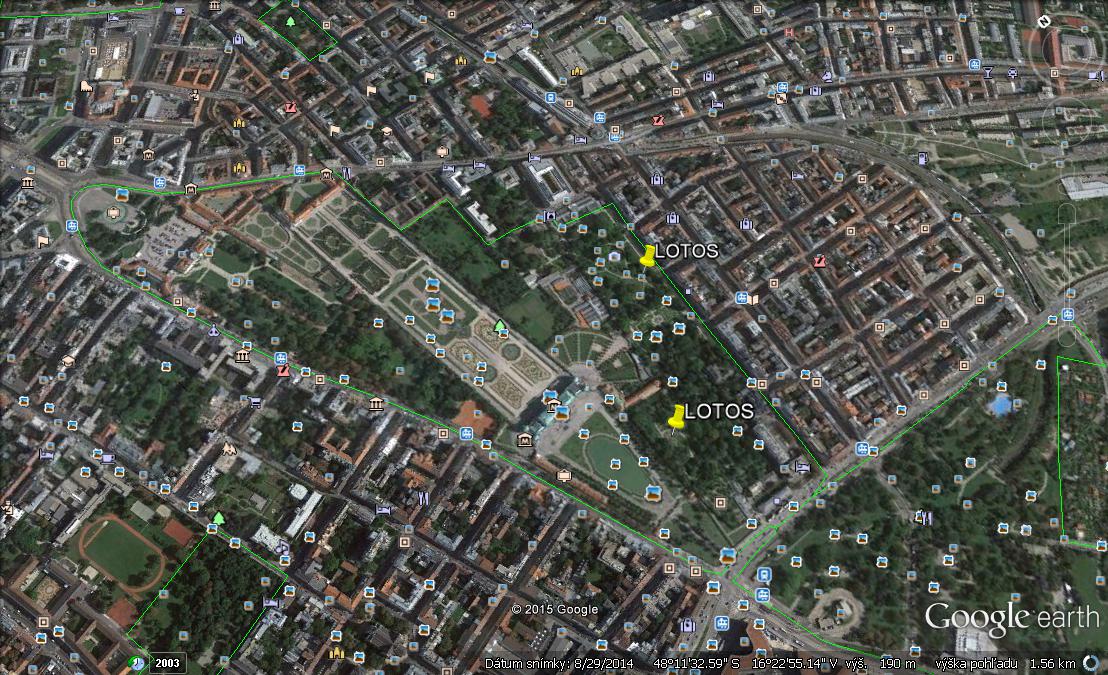 V Univerzitnej botanickej záhrade vo Viedni v susedstve zámku Belveder sa nachádzajú lotosy na dvoch miestach v okrúhlych fontánkach. Porasty sú relatívne malé, ale sú dôkazom toho, že aj tu sa lotosom darí. Zaujímavosťou tohto miesta je aj unikátny viac ako sto ročný porast bambusov. (Phyllostachys viridiglaucescens)