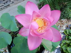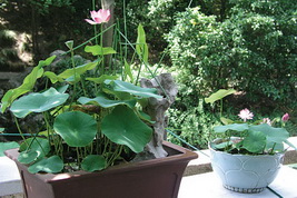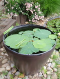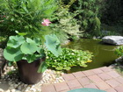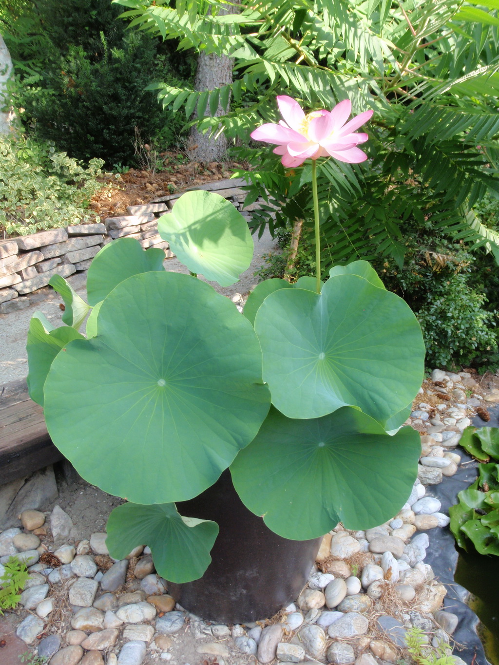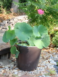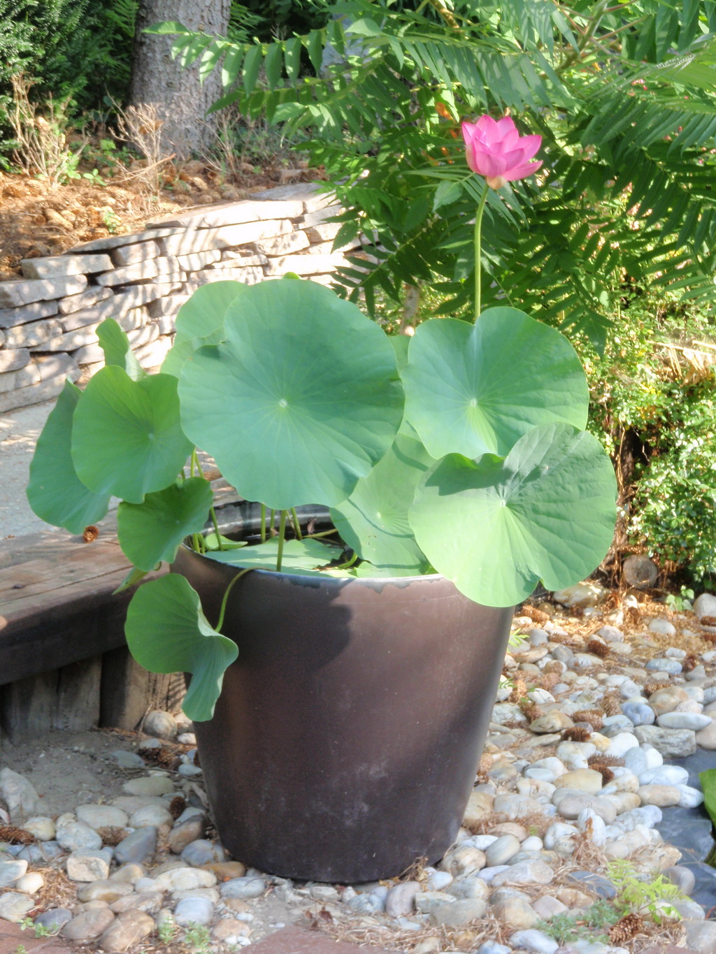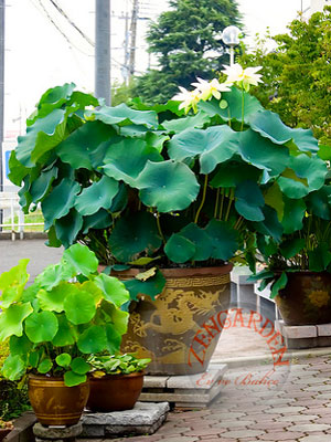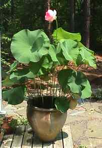 Ak sa rozhodneme pestovať lotos v nádobe vonku v záhrade, balkóne, alebo na terase, je to možné. Vysádzame do peknej, dostatočne veľkej nádoby hotovú rastlinu, alebo koreň (rhizóm). Pri výbere nádoby, okrem estetického hľadiska, berieme do úvahy druh lotosu a ako dlho ho chceme bez presádzania pestovať. Myslíme ale aj na to, že nádobu s lotosom je treba na zimu premiestniť, takže by mala byť tak veľká a ťažká, aby sme to zvládli.