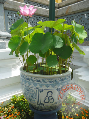 Postup výsadby koreňa je v časti „ROZSÁDZANIE LOTOSU“, postup výsadby hotovej rastliny je obdobný. Vždy dávame pozor, aby nedošlo k poškodeniu koreňa.