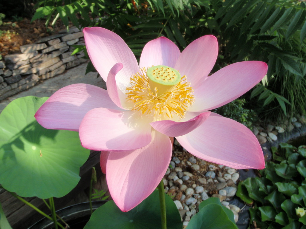Lotos je náročný na svetlo aj teplotu vody, takže vyžaduje plné slnko. Pozor treba ale dať hlavne pri menších nádobách, aby pri vysokých letných teplotách nedošlo k prílišnému prehriatiu vody. Ochladenie je možné doliatím chladnejšej vody, dávame ale pozor, aby sme rastline nespôsobili šok doliatím príliš studenej vody. Prihnojujeme asi raz týždenne menšou dávkou komplexného minerálneho hnojiva až do konca augusta, kedy sa rastlina začína pripravovať na vegetačný kľud. Obdobie kvitnutia je podľa počasia a odrody zhruba od konca júna do konca septembra. Pred kvitnutím a po kvitnutí je rastlina dekoratívna aj svojimi listami. Po ukončení vegetačného obdobia, pred príchodom prvých mrazov nádobu s lotosom zazimujeme. Viac v časti „ZIMOVANIE“.