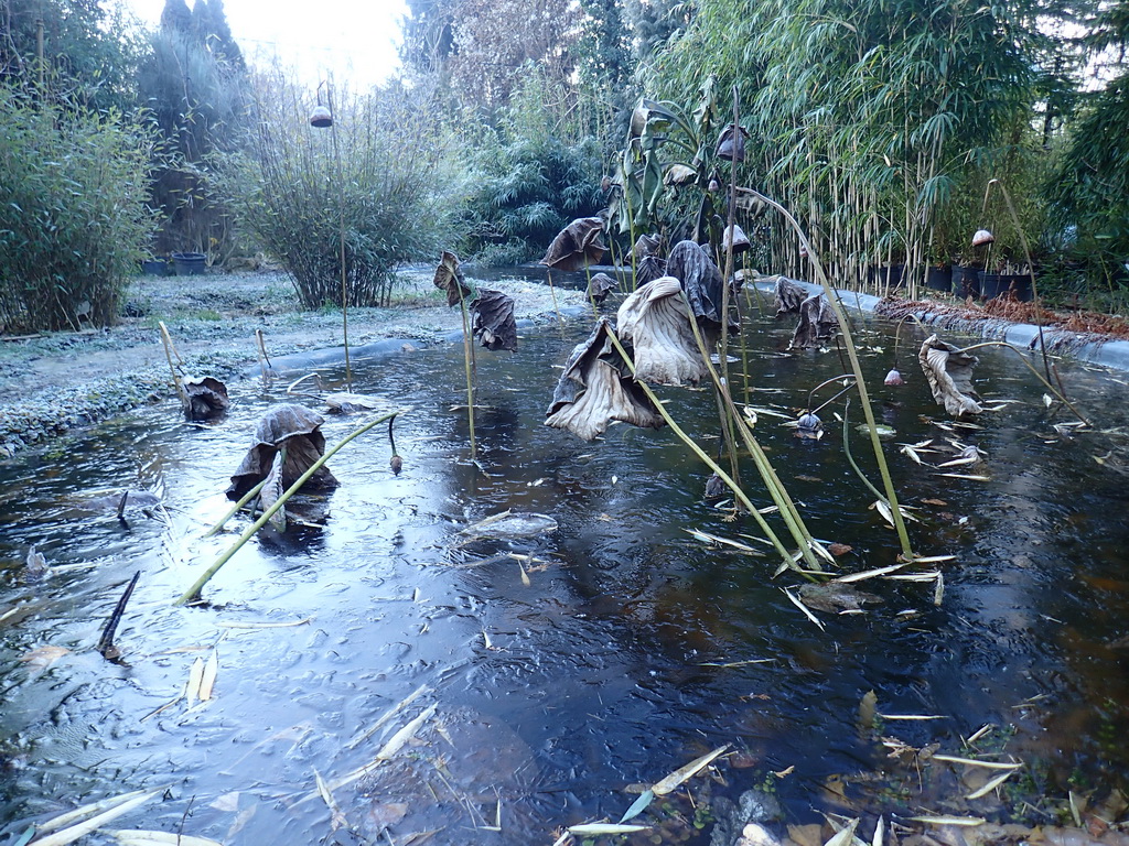 Keď je takto navozený substrát, podľa vodováhy ho zrovnáme a môžeme pristúpiť k samotnej výsadbe. Sadíme buď hotovú rastlinu , alebo koreň. Vždy dávame pozor, aby neprišlo ani k najmenšiemu poškodeniu koreňa, aby rastlina neuhynula. Po vysadení napustíme vodu až po okraj. S prihnojovaním začíname až po zakorenení a pri raste nových listov. Používame len komplexné minerálne hnojivá. Hnojíme vždy radšej častejšie a menej a vždy berieme do úvahy veľkosť rastliny a ročné obdobie. Koncom augusta, začiatkom septembra s hnojením končíme, aby rastliny do zimy riadne vyzreli. Porast lotosu vždy umiestňujeme tak, aby mal počas celého dňa plné slnko. V polotieni, alebo tieni sa mu dariť nebude. Dostatok slnečného žiarenia je dôležitý aj preto, aby sa voda dostatočne prehriala. Lotos začína vegetovať pri teplote vody cca 15 st. C a kvitnúť začína pri teplote vody cca 18 – 20 st. C.