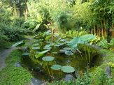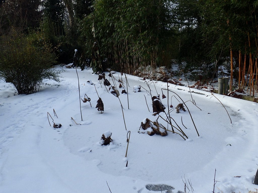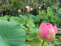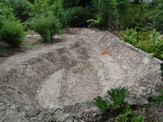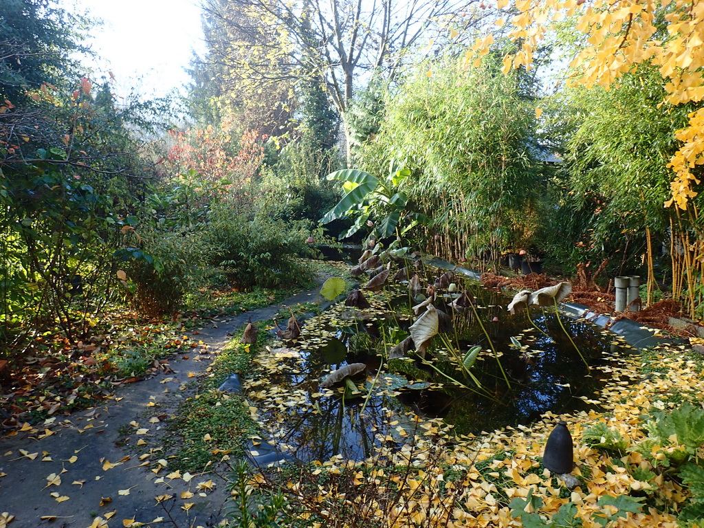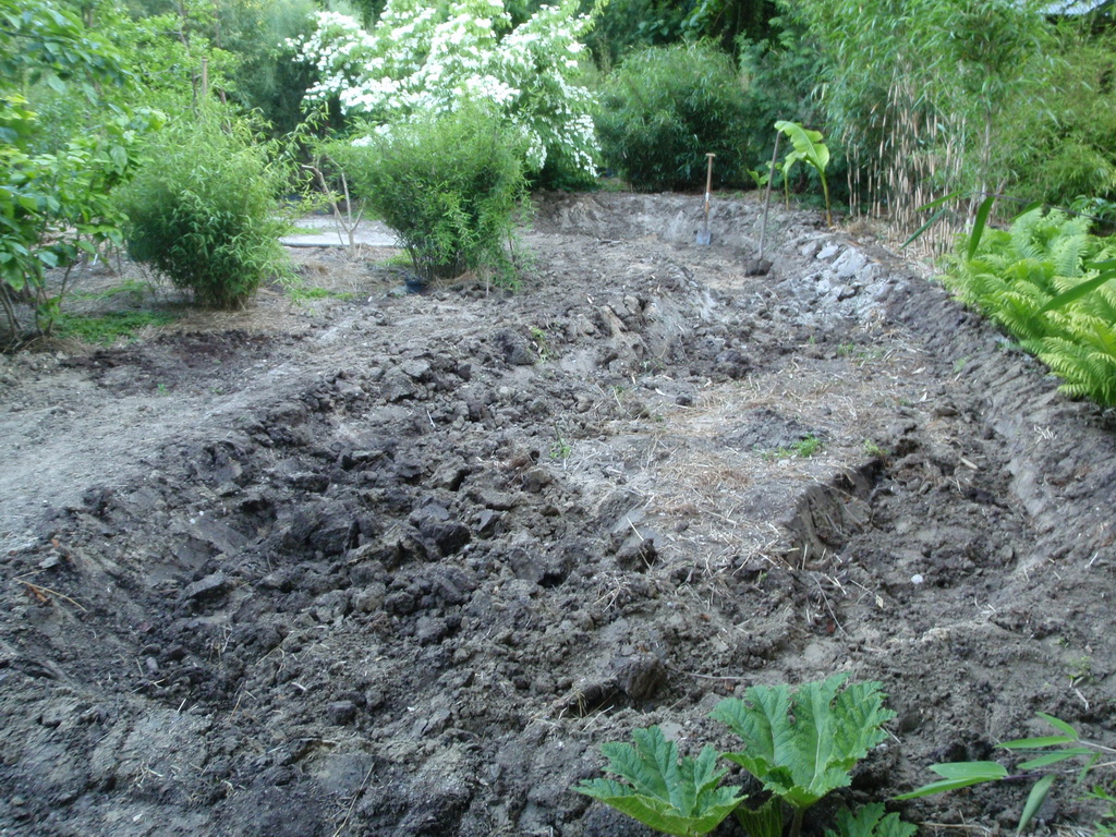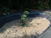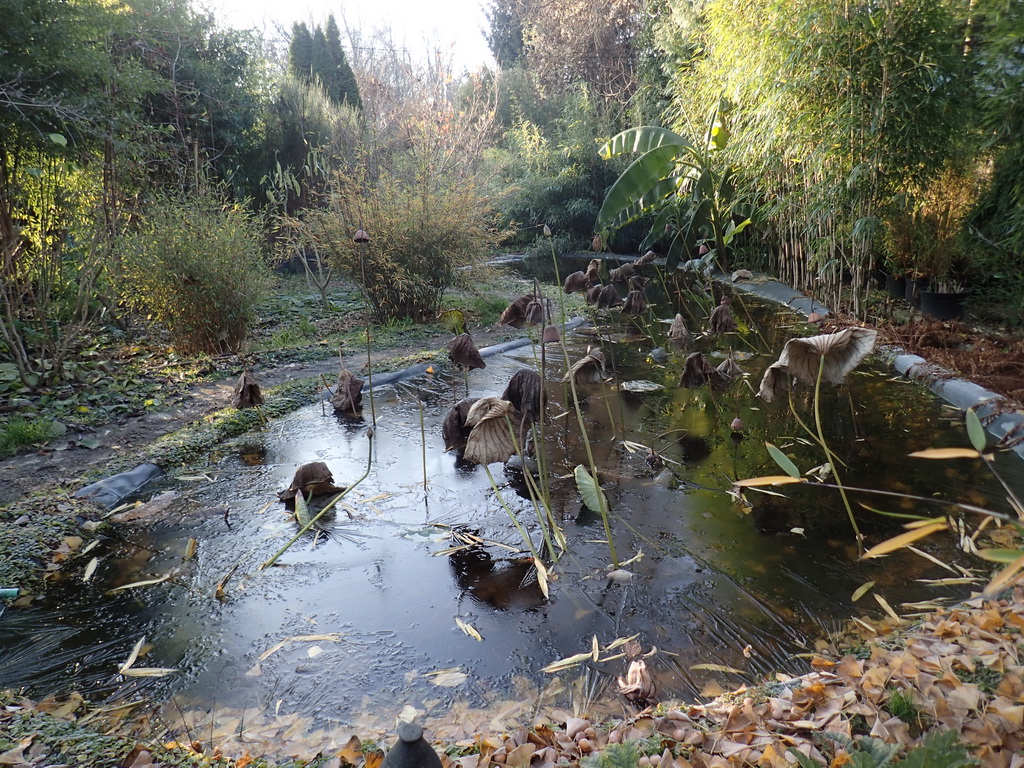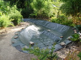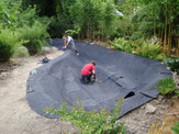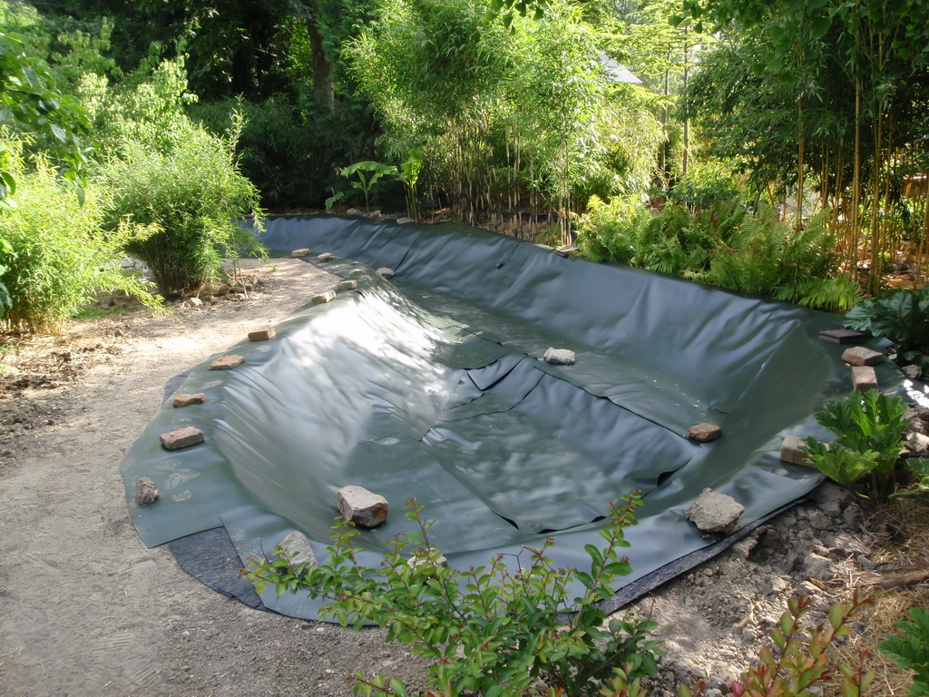 - Pri tomto spôsobe potrebujeme podstatne viac miesta, ako pri pestovaní v nádobe. Efekt je ale pôsobivejší, nakoľko na väčšej ploche sa rastlina lotosu lepšie vyvíja a je schopná dať aj mnohonásobne viac kvetov. Pri tomto spôsobe odporúčam minimálne 5 – 10 m2. Čím viac, tým lepšie. Môžeme si zvoliť lotosové jazierko len ako sólo porast, alebo porast lotosov ako súčasť väčšieho komplexu vodnej plochy a rastlín. Nakoľko sa lotos pomerne rýchlo rozširuje do okolia, je nutné vyhradiť mu samostatnú časť tak, aby priestor s lotosom bol oddelený od ostatnej výsadby tak, aby predel bol tesne pod hladinou (cca 10 cm ) a tým bolo zabezpečené, aby ostal len na mieste jemu vyhradenom. Ak sa rozhodneme týmto spôsobom pestovať viacero druhov, musíme každej odrode vymedziť samostatný priestor, aby nedošlo k ich premiešaniu. Samotná príprava zakladania je nasledovná: Nakreslíme si obvod jazierka. Priestor na výsadbu lotosu vyhĺbime asi do 80 – 100 cm, pričom jama sa mierne smerom dole zvažuje. Výkop po vyhladení nastelieme pevnou geotextíliou, následne sa umiestni jazierková fólia. Vhodné je, aby bola fólia lepená na mieste, aby neostávali na nej záhyby. Tie môžu spôsobiť, že lotosový koreň ako rastie sa dostane do záhybu a môže sa pri ďalšom raste zlomiť a tým môže prísť k jeho poškodeniu, alebo aj úhynu. Na fóliu dávame ďalšiu vrstvu geotextílie, ktorá chráni fóliu pred poškodením pri navážke substrátu. Piesčito – ílovitý substrát bez prímesi organických častí navážame asi 30 – 40 cm pod budúcu hladinu jazierka.