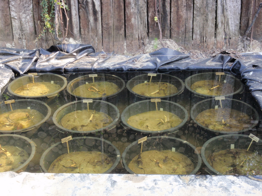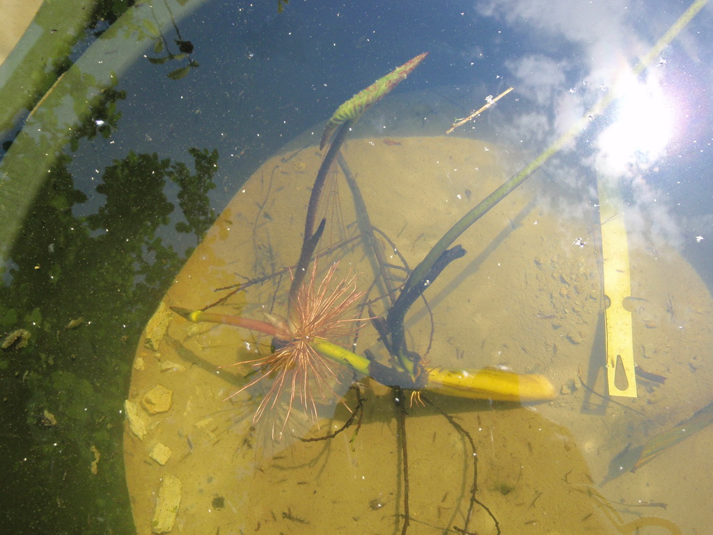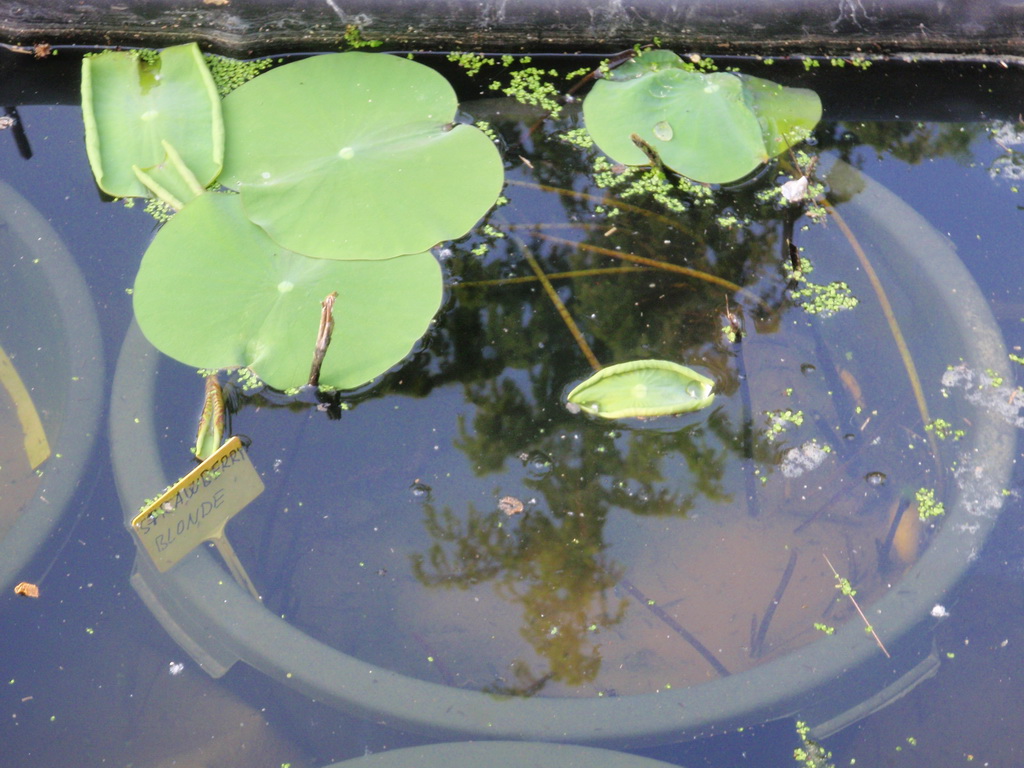 -Pri výsadbe do nádoby postupujeme obdobne ako pri výsadbe do nádoby, ktorú chceme mať vonku v záhrade, alebo na terase. V jazierku ju umiestňujeme tak, aby bola tesne pod hladinou, maximálne 30 cm. Ak chceme mať viacero druhov, rozmiestnime do jazierka viacero samostatných nádob. Vhodné sú nádoby okrúhle s objemom aspoň 60 l.