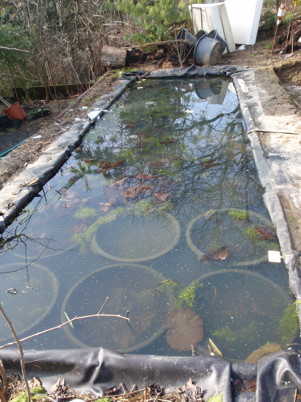 Po ukončení vegetácie, čo je niekedy koncom novembra, začiatkom decembra, sa musíme postarať o bezpečné prezimovanie rastlín lotosu. Rastliny v nádobách pestované vonku umiestnime do chladnej pivnice, alebo garáže pri teplote cca 0 – 5 st.C. Vodu z nádoby vylejeme, necháme len asi 1 cm vody nad povrchom substrátu. Suché listy zrežeme po povrch nádoby. Takto lotos vydrží až do konca marca, kedy ho môžeme vyložiť zas von, ak nehrozia silnejšie mrazy. Slabý mráz nad ránom koreňu neublíži. Ďalšia možnosť je nádobu dať do jazierka aspoň 50 cm pod hladinu, alebo zakopať na záhrade a z vrchu nastlať hrubou vrstvou lístia, alebo slamy tak, aby voda v nádobe nezamrzla. Rastliny v nádobách v jazierku, ktoré tam plánujeme ponechať alebo rastliny voľne vysadené, v prípade silnejších mrazov prekryjeme platňami polystyrénu o hrúbke 10 – 15 cm, čo zabráni hlbšiemu premrznutiu. Pred tým, ale hneď ako trochu primrzne hladina jazierka ostrou lopatou, alebo škrabákom na ľad zrežeme listy a povrch vyčistíme. Koncom februára, začiatkom marca podľa počasia izoláciu odstránime a čakáme na začiatok vegetácie., alebo rastliny v nádobách vyberieme a rozdelíme.